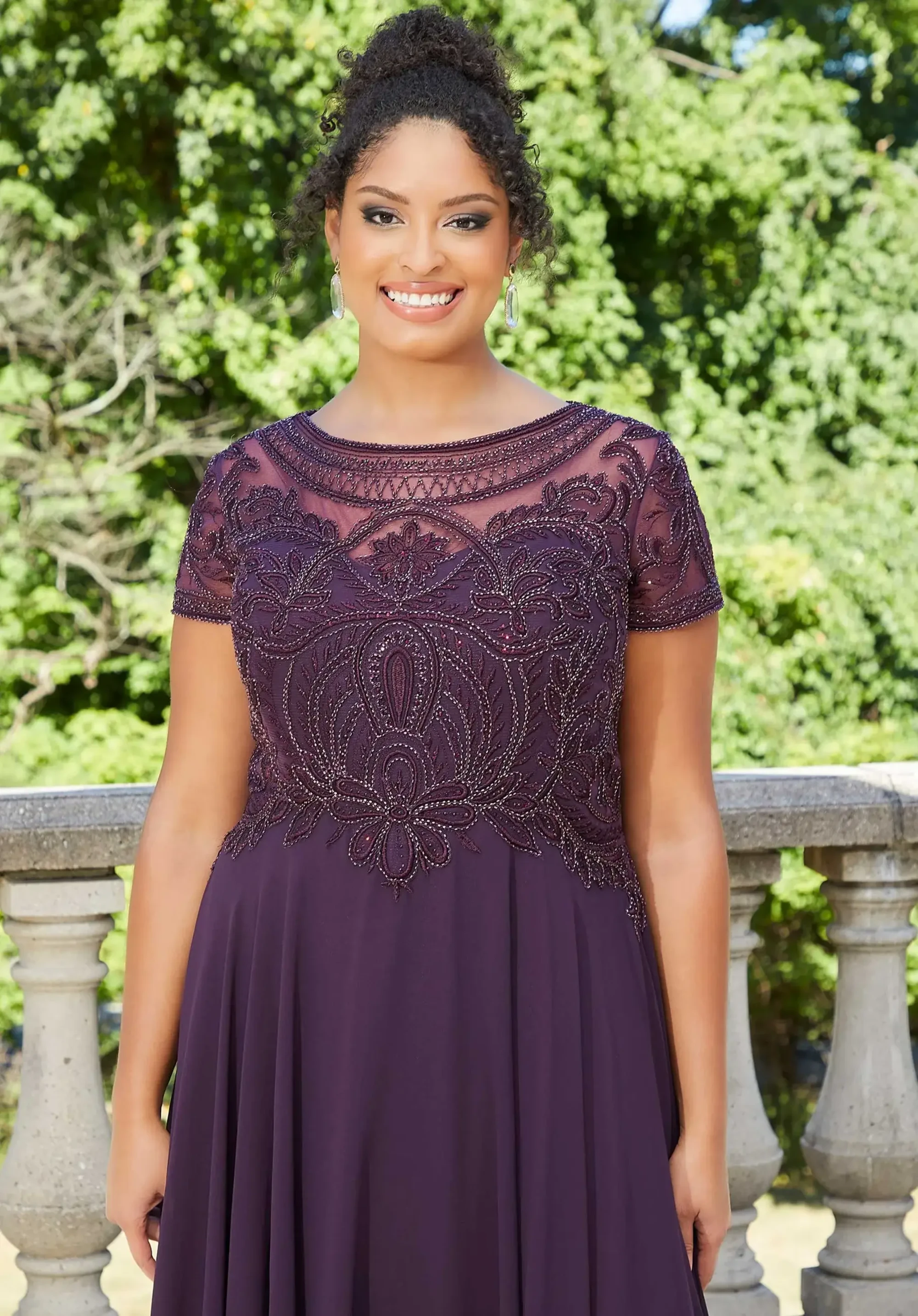 Evoke romance and femininity in this Madeline Gardner by Mori Lee gown, featuring an illusion neckline, cap sleeves, intricately beaded bodice, and flowy chiffon skirt. Manufacturer: Mori Lee Style: A-Line Neckline: Illusion Size Range: 10-18 Closure: Zipper; Hook & eye Fabric Type: Mesh; Chiffon Care Instructions: Dry Clean IMPORTANT NOTE: This item arrives with a return tag attached and instructions for removal. Once the tag is removed from the dress, this item cannot be returned.