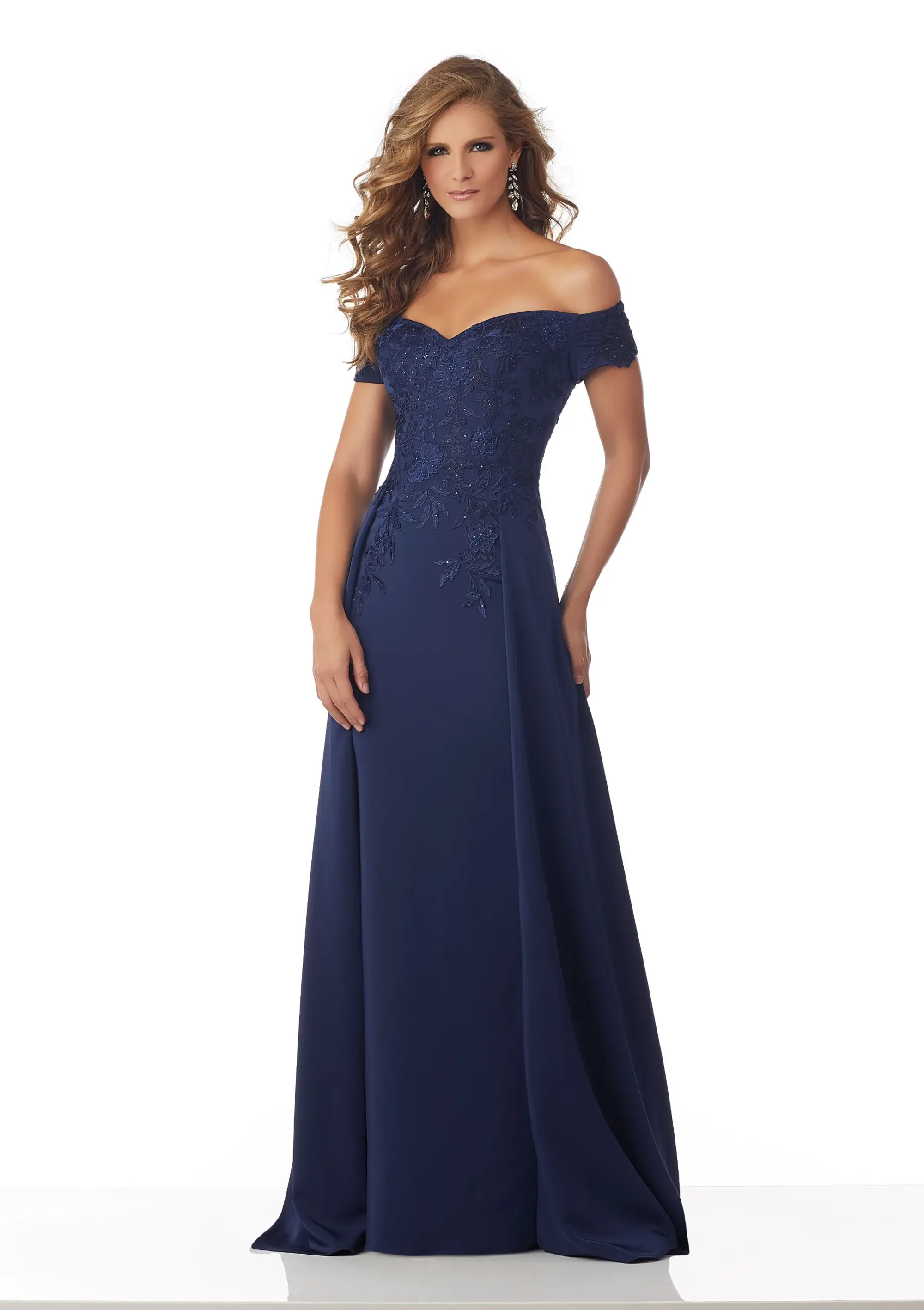 This stunning Mori Lee gown features an off-shoulder neckline, intricately embroidered bodice, flowing side panels, and sultry side slit. Manufacturer: Mori Lee Style: A-Line Neckline: Off-Shoulder Size Range: 6-16 Closure: Zipper; Hook & eye Fabric Type: Jersey Care Instructions: Dry Clean IMPORTANT NOTE: This item arrives with a return tag attached and instructions for removal. Once the tag is removed from the dress, this item cannot be returned.