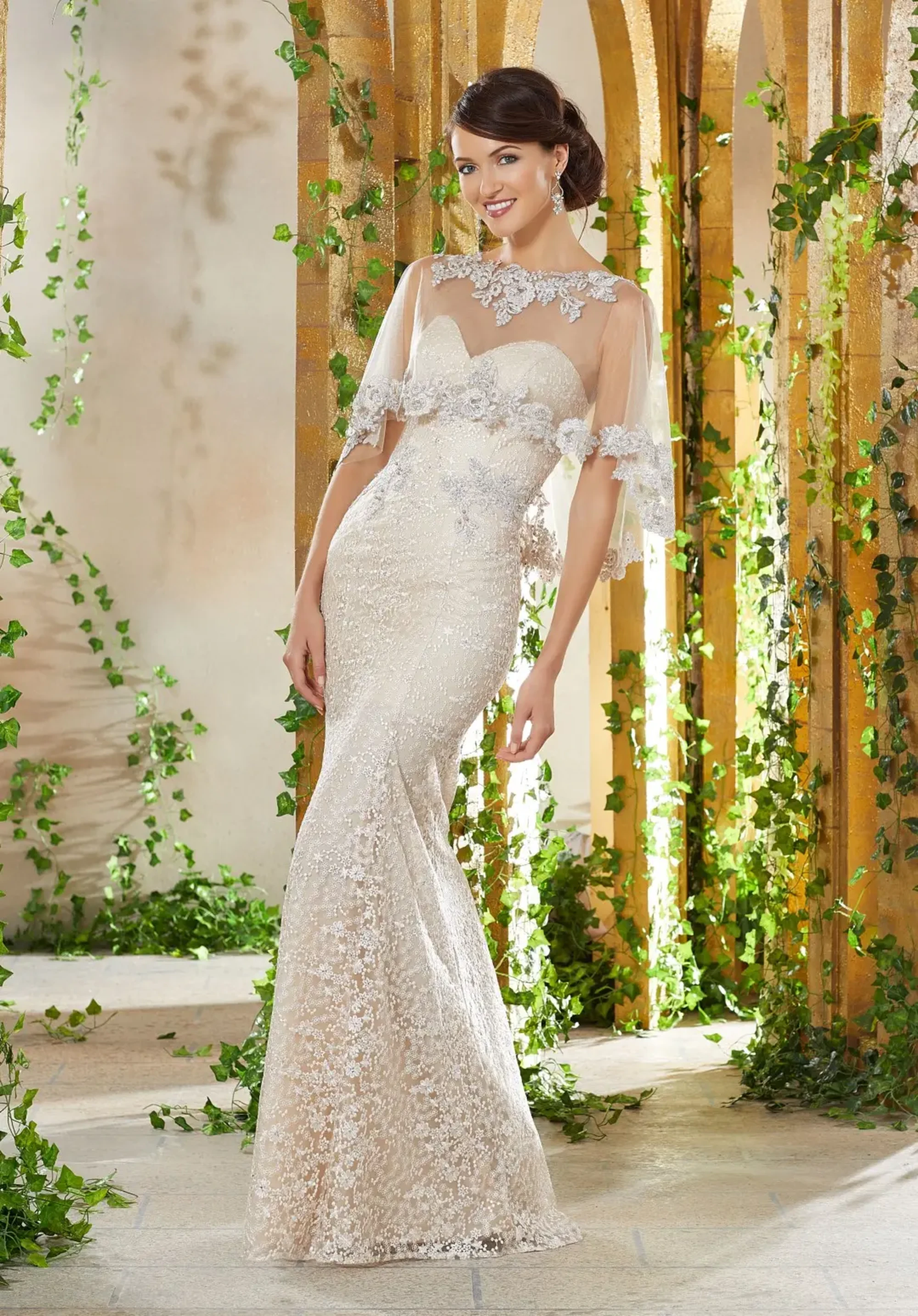 Make an entrance at your next formal affair in this MGNY gown, featuring a strapless, sweetheart neckline, elegant embroidery throughout, stunning sheath silhouette, and complementing shawl. Manufacturer: MGNY Style: Sheath Neckline: Sweetheart Size Range: 6-18 Closure: Zipper; Hook & eye Fabric Type: Lace Care Instructions: Dry Clean IMPORTANT NOTE: This item arrives with a return tag attached and instructions for removal. Once the tag is removed from the dress, this item cannot be returned.